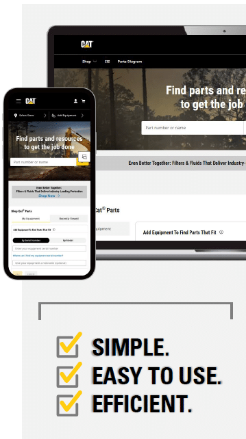 Save 10% on all of your genuine Cat® parts on PARTS.CAT.COM! With millions of genuine Cat® parts, accessories, and powerful search tools right at your fingertips, parts.cat.com only shows you the exact parts built for your machine. Just look for the green checkmark!